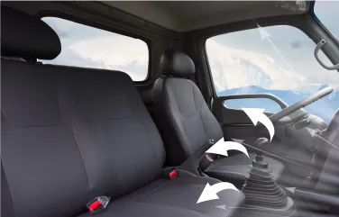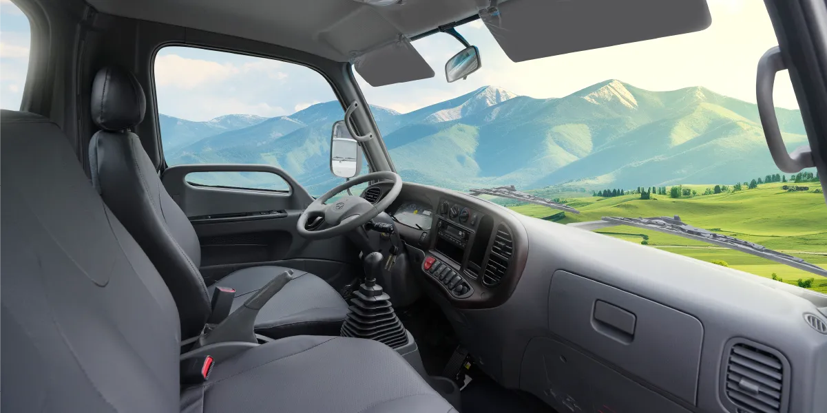 Không gian nội thất cabin được thiết kế rộng rãi và thông minh, mang lại sự thoải mái tối ưu cho tài xế ngay cả trên những hành trình dài hàng giờ. Các công tắc trên bảng điều khiển được bố trí một cách logic và dễ tiếp cận, giúp bạn thao tác nhanh chóng mà không rời mắt khỏi đường đi. Vô lăng với trợ lực điện có thể điều chỉnh độ nghiêng linh hoạt, mang đến cảm giác cầm nắm chắc chắn và tăng độ chính xác khi điều khiển, dù là trên đường cao tốc hay địa hình đô thị. Hơn nữa, hệ thống điều hòa công suất lớn hoạt động mạnh mẽ, phân bổ luồng gió mát đều khắp cabin, đảm bảo không khí luôn tươi mới và thoáng đãng, giúp xua tan mệt mỏi trong những ngày nóng bức
